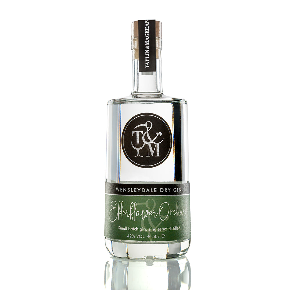 Taplin & Mageean Elderflower Orchard Craft Gin is accompanied perfectly with Mediterranean tonic, ice & a thin slice of green apple