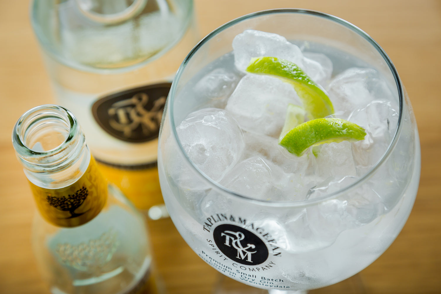 Taplin & Mageean Peach & Basil Craft Gin is accompanied perfectly with Premium Indian Tonic, Ice, Lime Zest and Basil Leaf