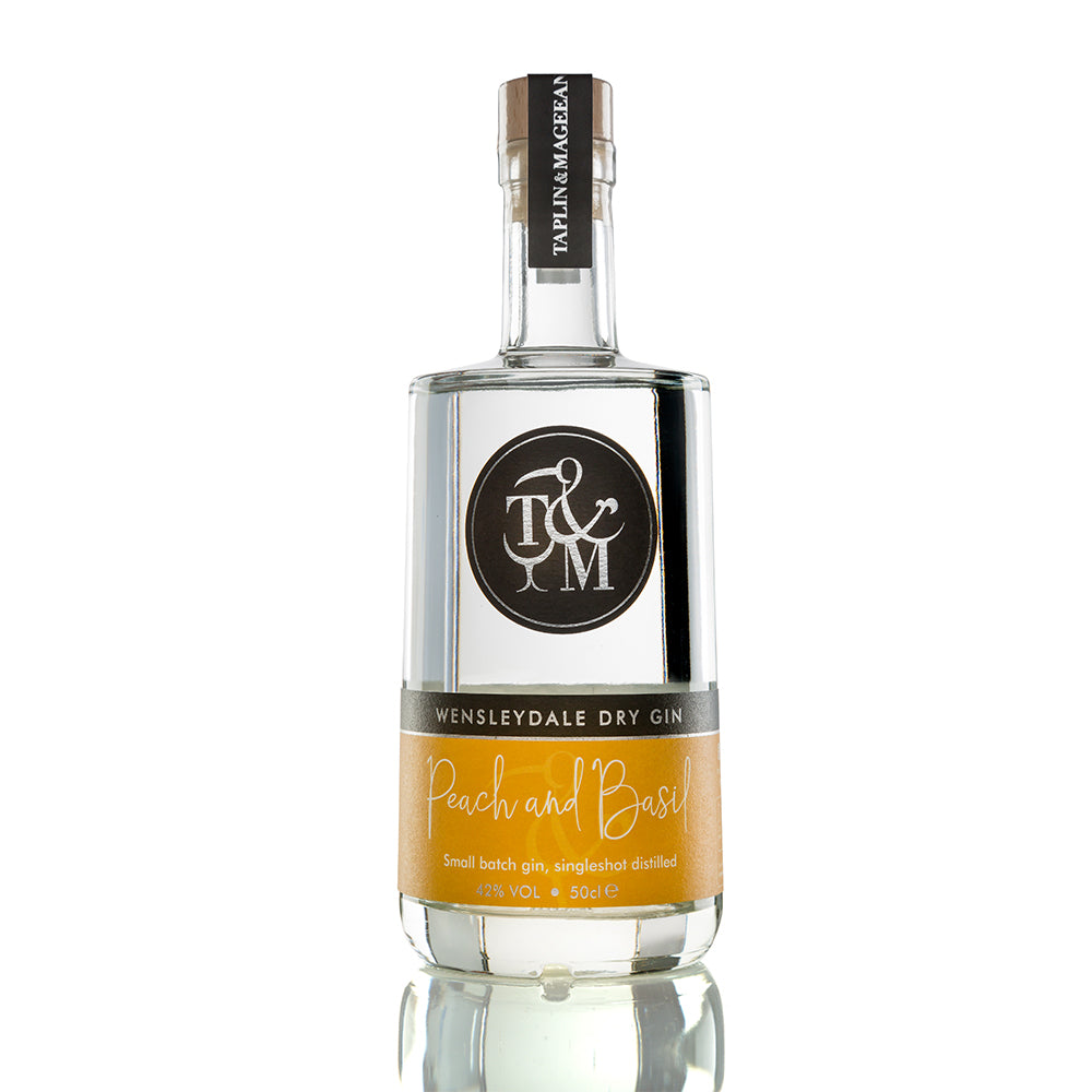Taplin & Mageean’s Peach & Basil gin is an award-winning crowd-pleaser and is praised as being one of the most beguiling and refreshing premium craft London Dry gins to be found today. A traditional gin made without adding any post-distillation flavours, the Peach and Basil gin combines peaches, vanilla, and liquorice root in a beautifully balanced recipe. Cocoa and angelica root brings a full body to support the sweet and summary headline, and a refreshing basil and pink peppercorn finish caps off a delectably complex experience. We use basil in this recipe to take away some of the sweetness of the peach while at the same time complimenting the subtle peach taste.